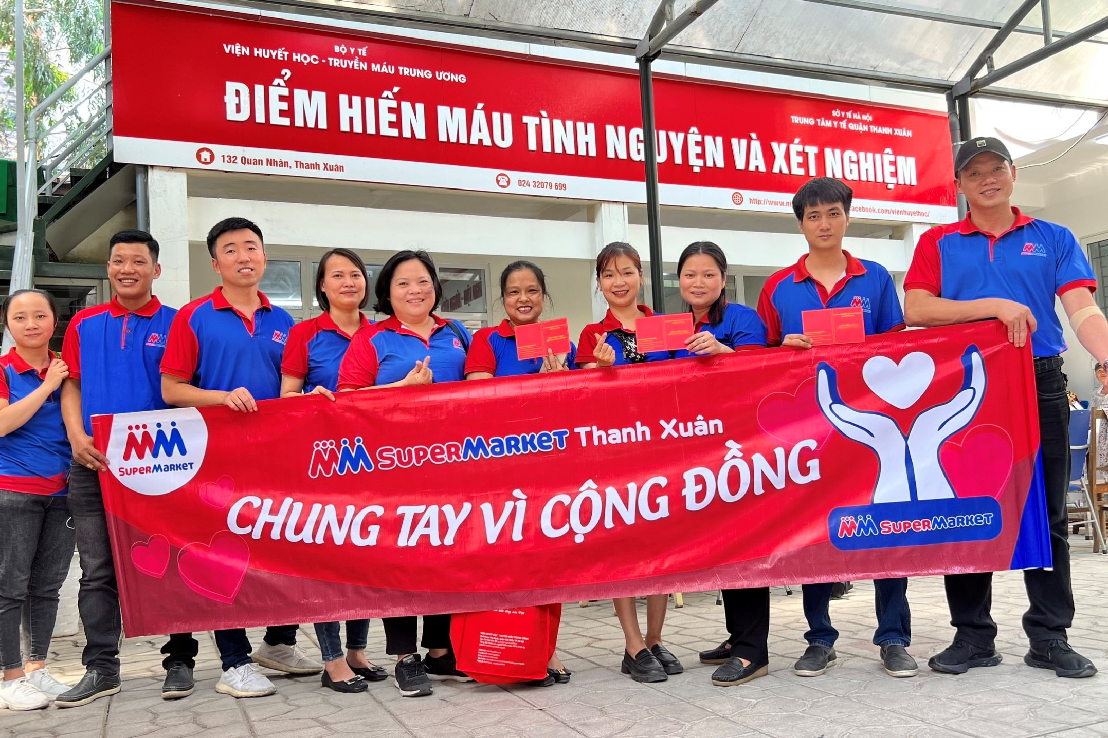 Sáng ngày 15/04/2023, hơn 20 nhân viên của trung tâm MM Mega Market Hà Đông đã hăng hái tham gia Ngày hội hiến máu tình nguyện được tổ chức tại Ủy ban nhân dân phường Hà Cầu.