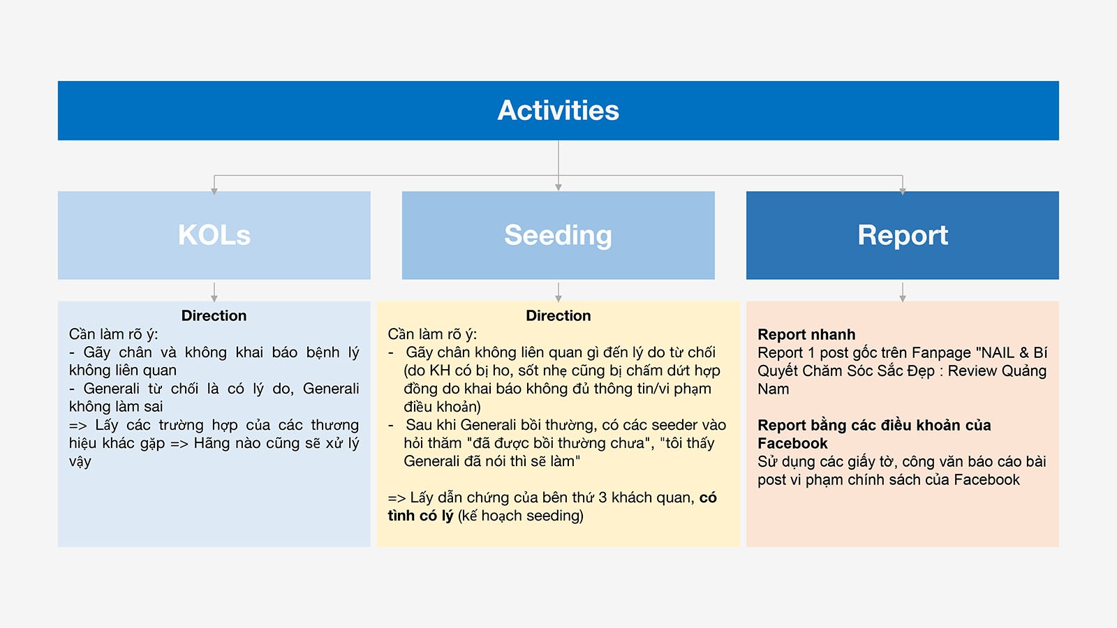 Chúng tôi làm việc sát sao với brand team của Generali Việt Nam, cập nhật diễn biến theo thời gian thực và trao đổi liên tục về các tín hiệu mới phát sinh. Việc phối hợp này giúp thương hiệu chủ động kiểm soát tình hình, đồng thời tránh những hành động có thể vô tình khuếch đại rủi ro.